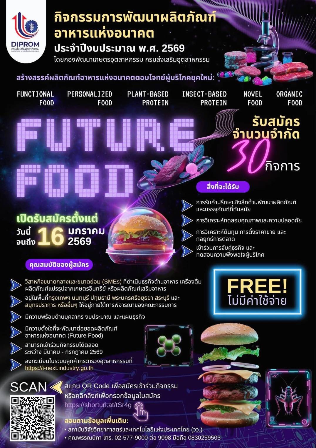 เชิญสมัครเข้าร่วมกิจกรรม พัฒนาผลิตภัณฑ์อาหารแห่งอนาคต (FUTURE FOOD)